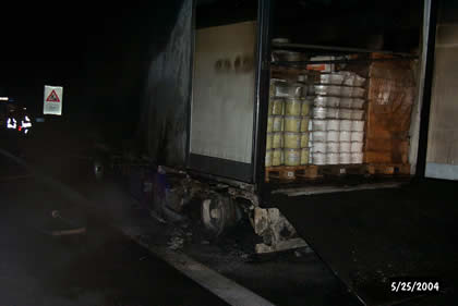 Am Donnerstag, dem 15.04.04 war um ca. 20:00 Uhr ein aus Belgien stammender LKW auf der BAB A1 in Richtung Osnabrück aus ungeklärter Ursache nach links von der Fahrbahn abgekommen und in die Mittelleitplanke...