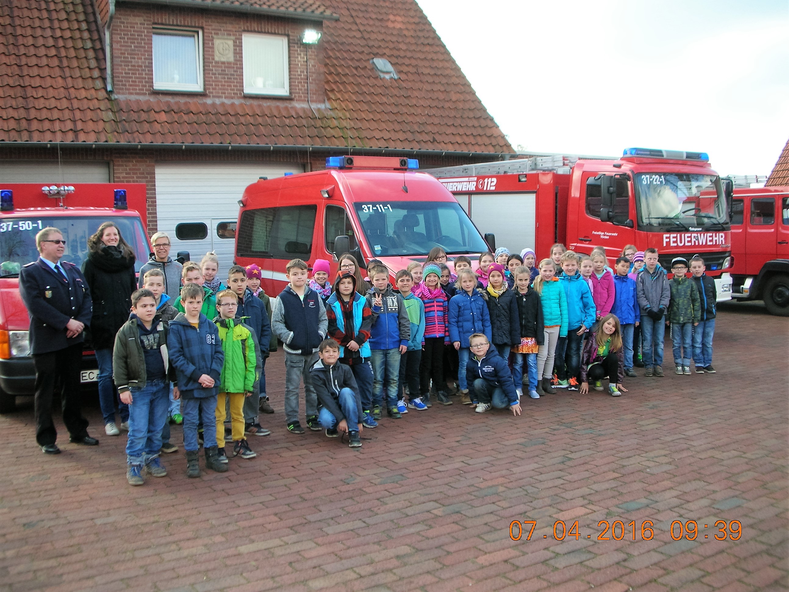 Am Do., dem 28. Mai besuchten die Klassen 3a und 3b der Grundschule Vörden mit ihren Lehrerinnen die Feuerwehr.