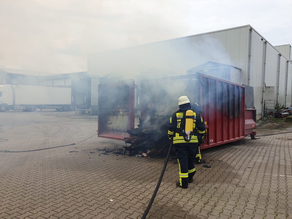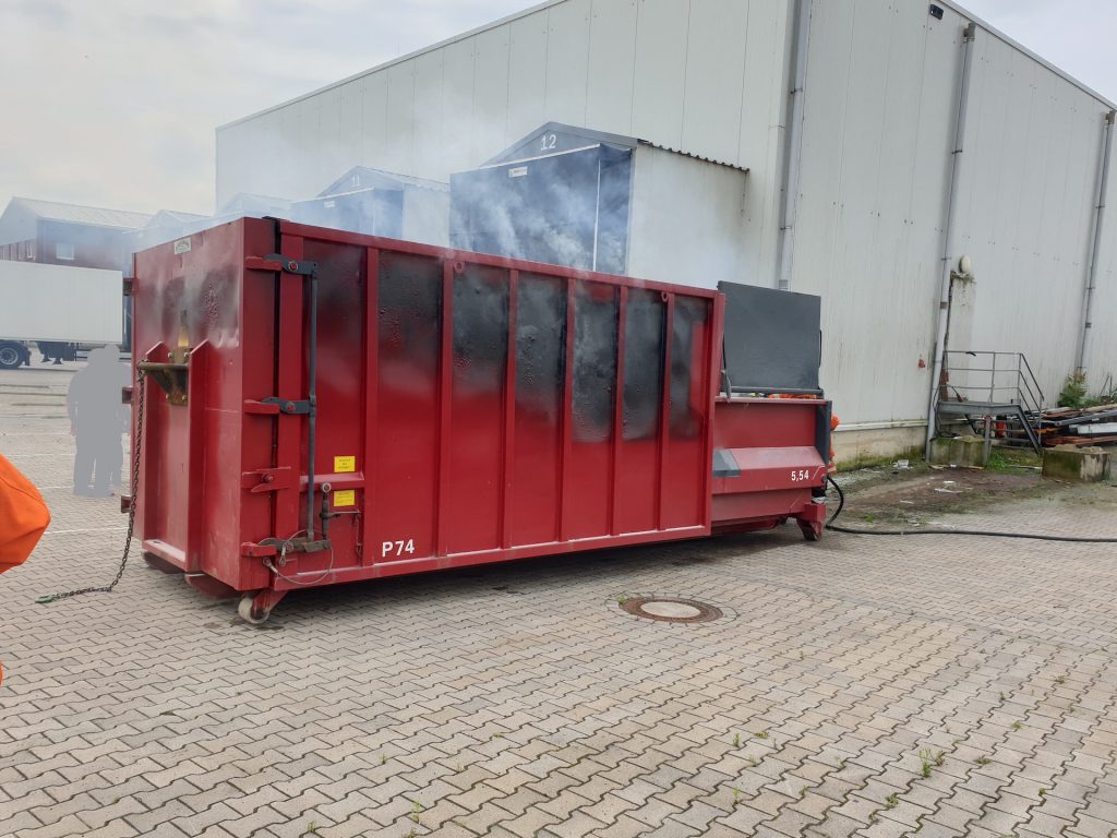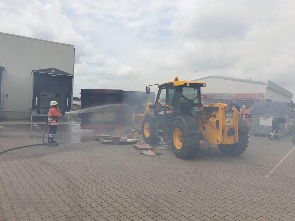 Beim Eintreffen der ersten Einsatzkräfte, brannte es im Inneren eines Papierpresscontainers, der neben einer Halle stand. Mitarbeiter der Firma hatten schon Löschversuche mit Feuerlöschern unternommen.