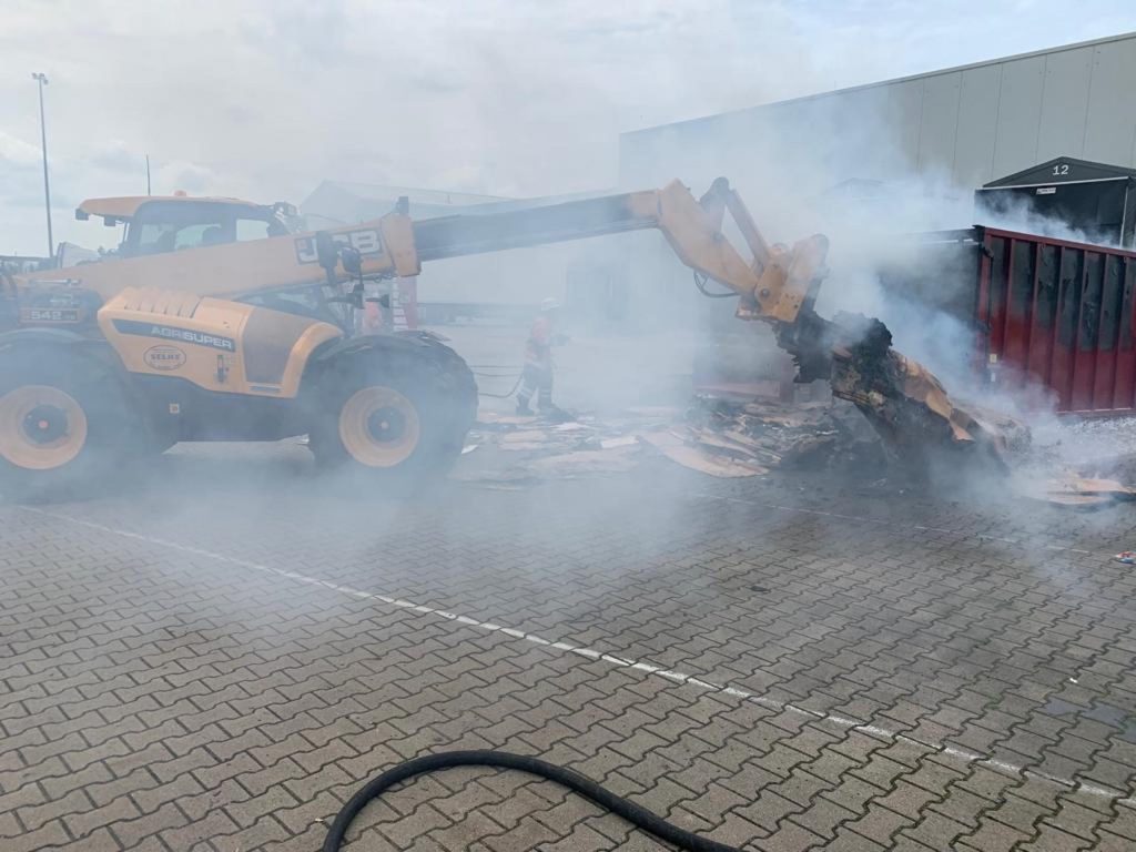 Um eine Ausbreitung des Brandes auf das Gebäude zu verhindern, wurde der Container mit einem Gabelstapler vom Gebäude weggezogen. Nach dem von zwei Seiten ein Löschangriff aufgebaut war, konnte der Container geöffnet werden um an den Brandherd zu gelangen. Im weiteren Einsatzverlauf wurde mit einem Teleskoplader das Brandgut aus dem Container gezogen, um dies auf dem Hof gezielt ablöschen zu können.