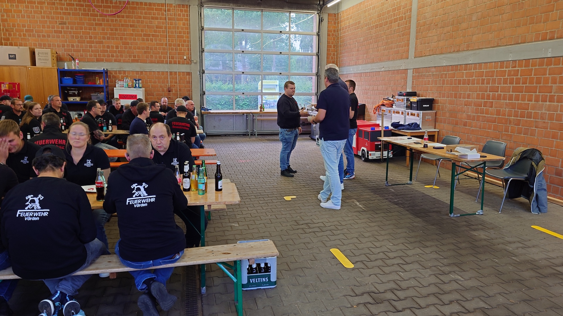 Nach einer kurzen Begrüßung durch den Bürgermeister, wurden die Ehrennadel sowie die dazugehörigen Urkunden durch den Bürgermeister Ansgar Brockmann, Marcel Depeweg (Gemeindebrandmeister) und Niko Timphaus (Leiter des Amtes für Bürgerservice und Zentrale Verwaltung) an die Feuerwehrkameraden verliehen. Im Anschluss ließ man den Abend bei paar Kaltgetränken und einen Snack noch gemütlich ausklingen.