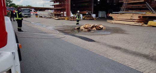 Am Montag, den 13.06.2022, wurden wir mit dem Stichwort „F2 Container brennt“ alarmiert. Anschließend kam die Info, dass der Container an dem Gebäude einer Tischlerei steht. Kurz vor Eintreffen der ersten Einsatzkräfte wurde das Einsatzstichwort aufgrund der starken Rauchentwicklung und der vermehrten Anrufe auf F3 erhöht. Da der Container sehr dicht an dem Gebäude stand, drohte ein Übergreifen auf die Tischlerei. Es wurden direkt 2 Trupps unter PA mit jeweils einem C-Strahlrohr zur Riegelstellung eingesetzt. Das LF 8 verlegte währenddessen eine Wasserleitung von einem nahegelegenen Hydranten und unterstütze dann bei der Brandbekämpfung. Mithilfe der Feuerwehr Neuenkirchen konnte ein Übergreifen auf das Gebäude verhindert werden. Die ebenfalls mitalarmierte Feuerwehr Damme ging erstmal in Bereitstellung. Im weiteren Einsatzverlauf wurde das Gebäude von innen und außen mit Wärmebildkameras kontrolliert. Nach Eintreffen eines Radladers wurde der Container vom Gebäude weggezogen, um ihn zu entleeren und abzulöschen. Nach Ablöschen der letzten Glutnester konnten wir die Einsatzstelle nach circa 2,5 Stunden verlassen.