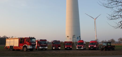 Fahrzeuge: Einsatzleitwagen (ELW), Gerätewagen (GW), Löschgruppenfahrzeug (LF8), Tanklöschfahrzeug (TLF)