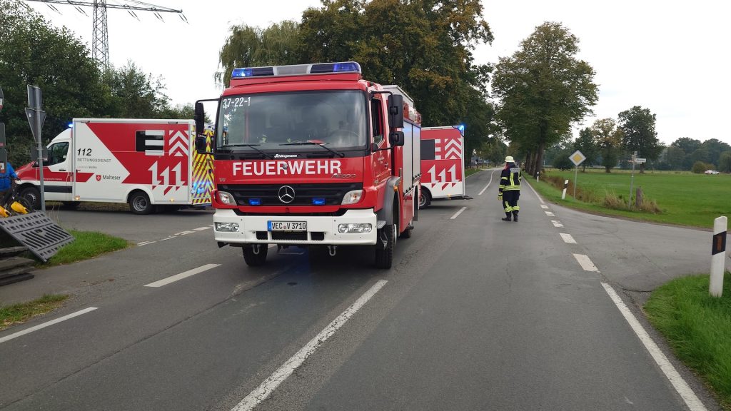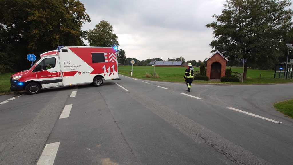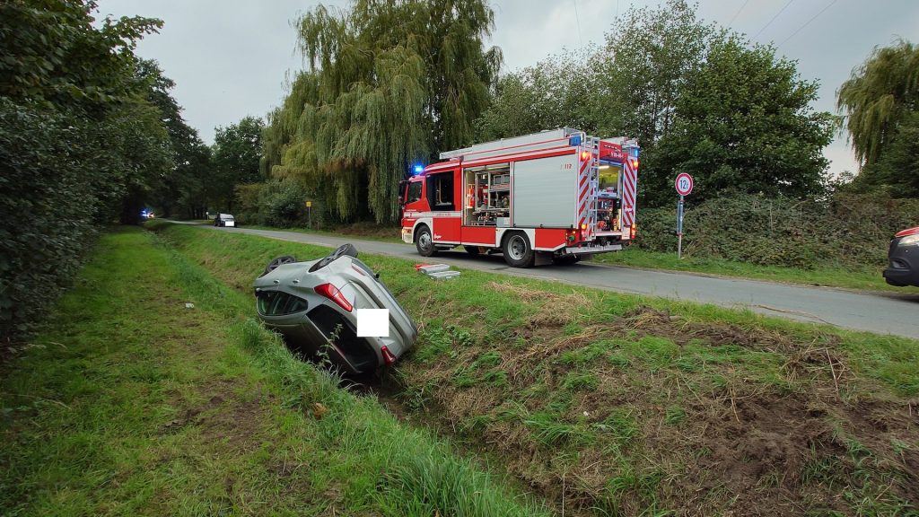 Am frühen Samstagabend des 27.09.2025 wurde die Feuerwehr Vörden um 17:42 Uhr mit dem Stichwort „VU-PKW überschlagen-2 Verletzte-liegt im Wassergraben“ auf die L76 nach Hörsten alarmiert. Nach dem Eintreffen der ersten Einsatzkräfte konnte schon einmal eine kleine Entwarnung gegeben werden, da zum Glück keiner eingeklemmt war und die Verletzten den PKW schon verlassen konnten. Die Feuerwehr Vörden übernahm bis zum Eintreffen des Rettungsdienstes die Erstversorgung der Verunfallten und sperrte die Einsatzstelle ab. Nach Rücksprache mit der Polizei, konnte die Feuerwehr die Einsatzstelle nach circa 45 Minuten wieder verlassen.