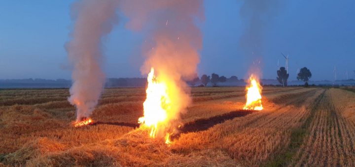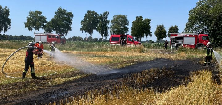Am Samstagmittag, den 08.07.2023, wurde die Feuerwehr Vörden um 13:16 Uhr zu einem Flächenbrand zwischen Ahe und Campemoor alarmiert. Beim Eintreffen der ersten Einsatzkräfte standen circa 60-80 m² eines abgeernteten Getreidefeldes in Brand. Das...