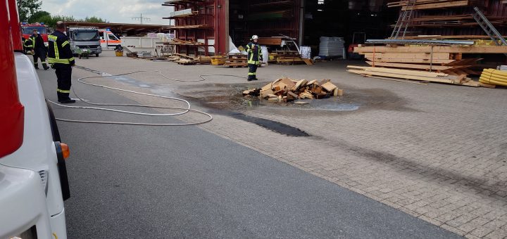 Am Freitag, den 14.07.2023, wurde die Feuerwehr Vörden um 14:25 Uhr mit dem Stichwort „F3#RD1, Feuer im Betrieb“ nach Ahe alarmiert. Da es sich um eine Zimmerei handelte, wurden die Feuerwehren Neuenkirchen und Damme...
