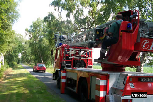 Am 13.07.2005 wurde OrtsBM R. Bürger darüber informiert, dass in Campemoor ein großer Ast einer Birke auf eine Telefonleitung zu stürzen droht. Zur Unterstützung wurde die Drehleiter des Landreises Vechta aus Damme gerufen und...
